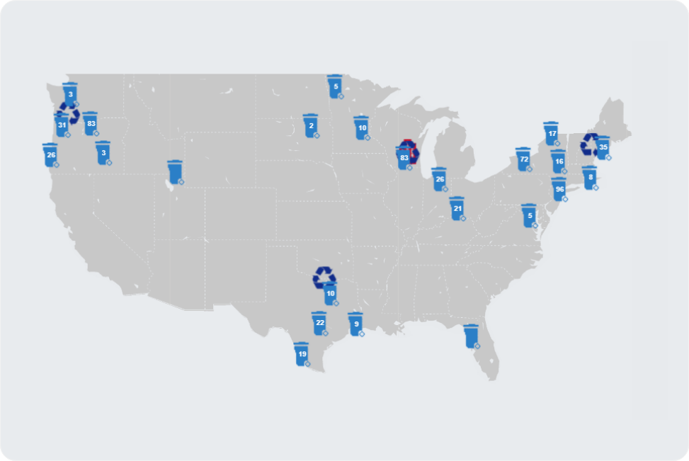 URT provides full service, integrated recycling services through a diverse range of capabilities that serve customers throughout the United States. Our world-class processing facilities are located in four distinct regions—giving us a broad geographic reach to serve customers from coast to coast.